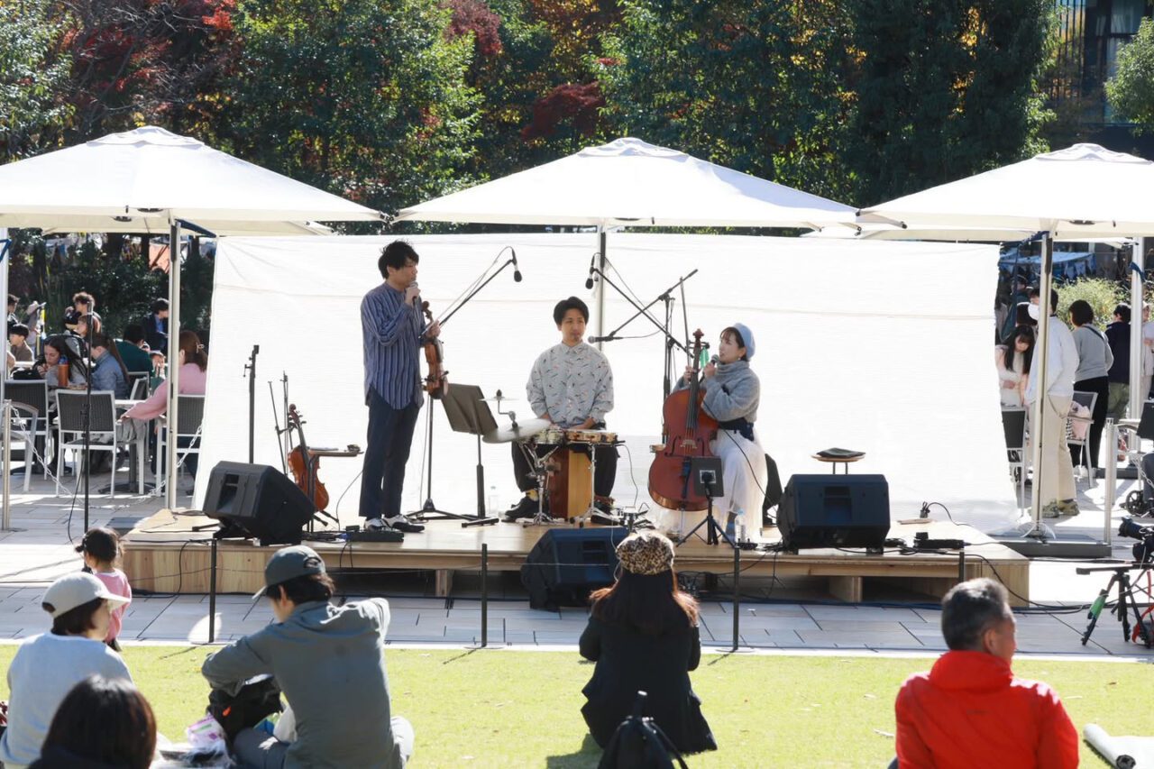 11月22日に立川GREEN SPRINGSで開催された「GREEN GROWN MARCHE! 秋の収穫祭」にフィドルとチェロのデュオStringersが出演しました。