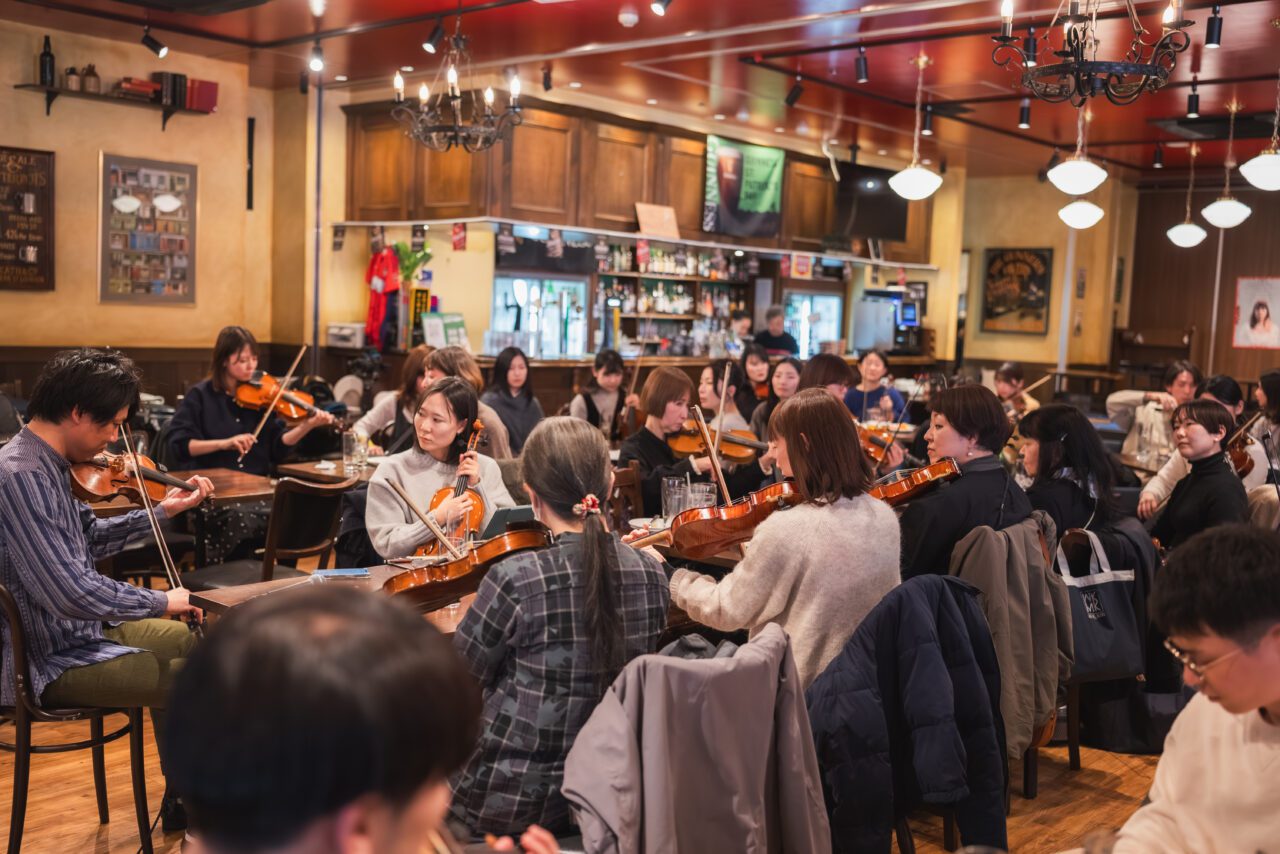 フィドルクラスに在籍されている皆さんが一堂に集まり、音楽やおしゃべり、お酒などを楽しみました。